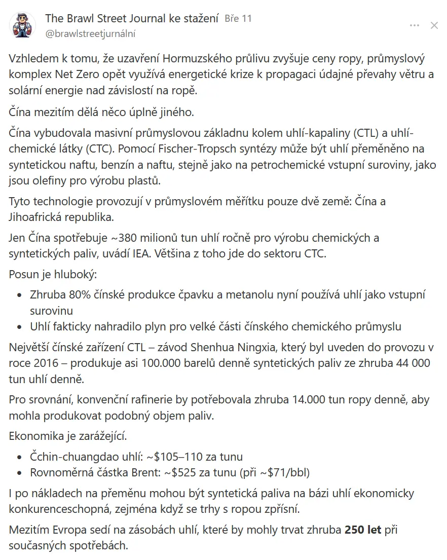 Mezitím Evropa sedí na zásobách uhlí, které by mohly trvat zhruba 250 let při současných spotřebách.